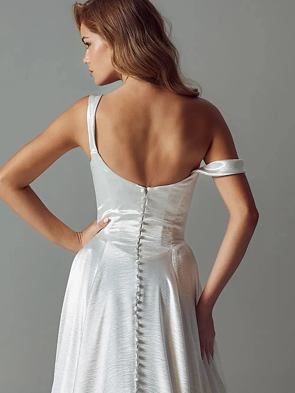 For the bride who loves timeless glamour with a contemporary edge, Molly by Evie Young transforms classic satin into a luminous, fashion-forward statement. Hammered satin adds subtle texture and movement, creating a gown that feels effortlessly chic.