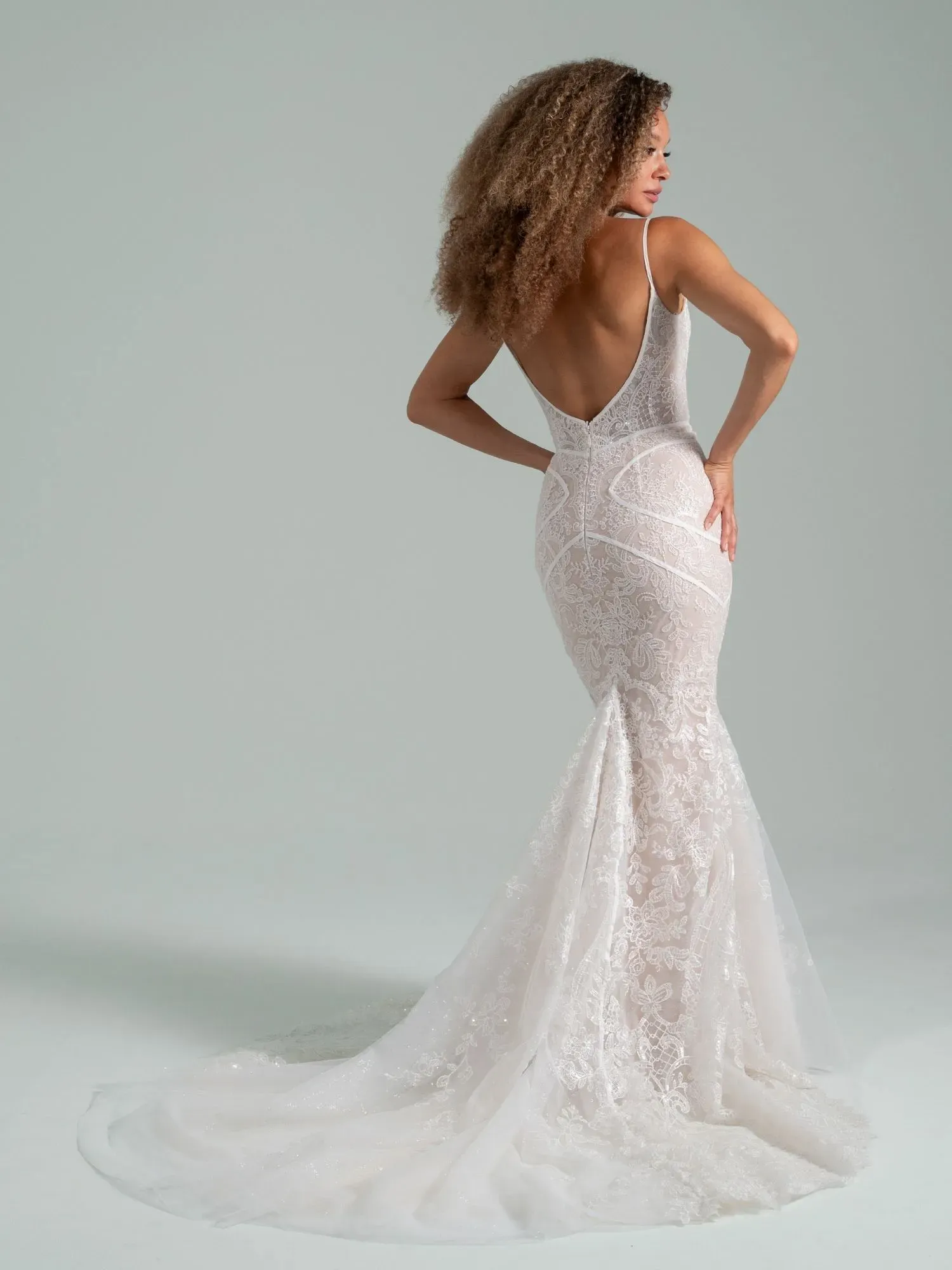 Sculpted, romantic, and strikingly modern, “Chrysalis” by Hayley Paige is a fit-to-flare gown that celebrates transformation through confident structure and flowing movement. Perfect for the bride who loves sensual detailing, sculpted shaping, and graceful drama.