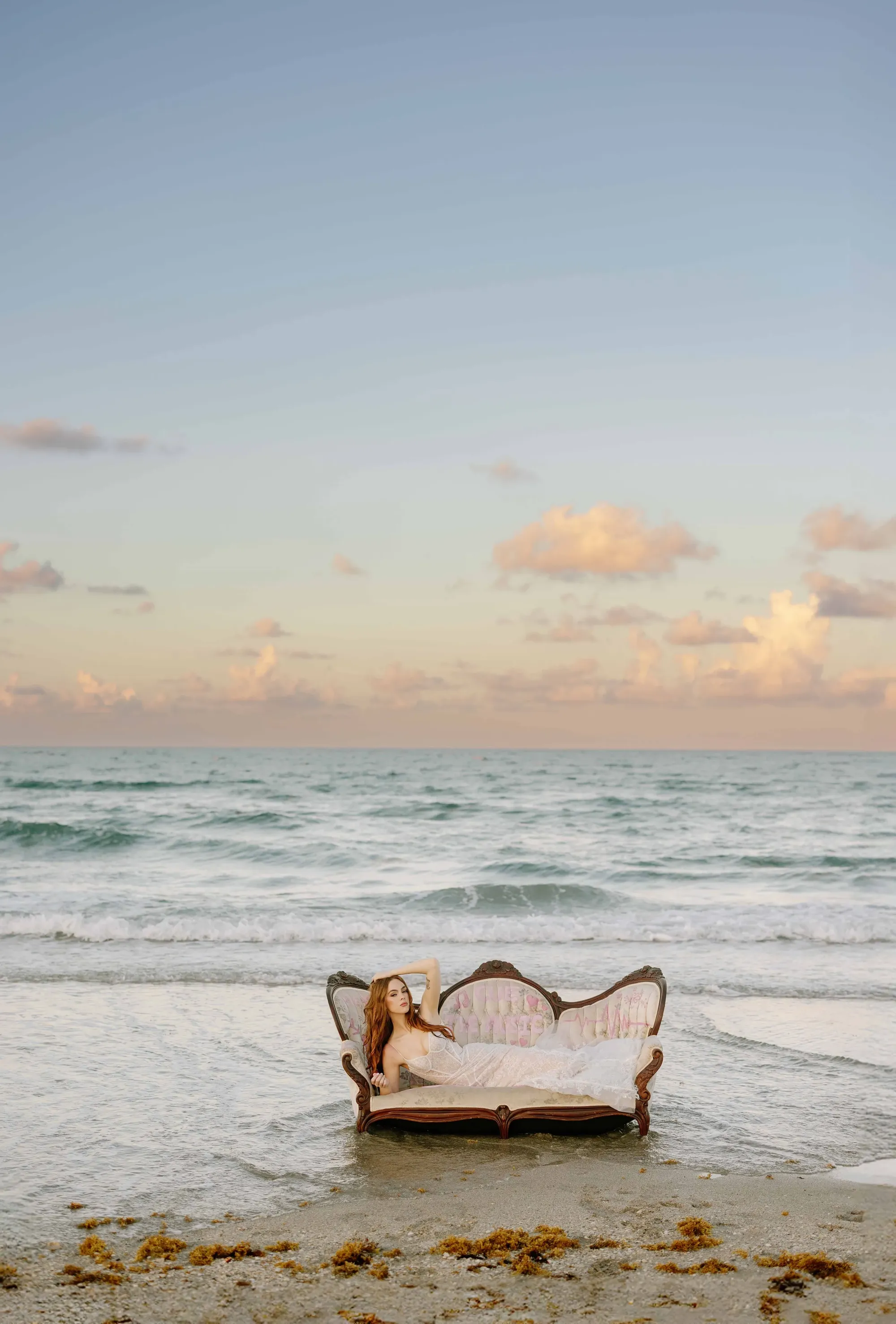 - Cashmere lining with a sweeping chapel train for luxury and comfort
