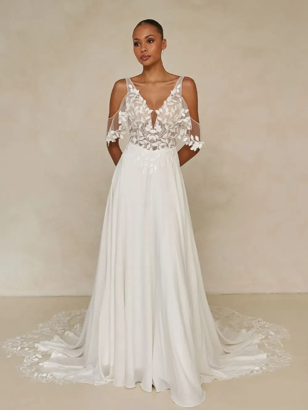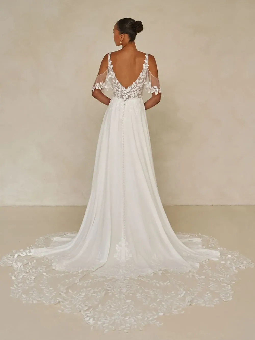 A tribute to our iconic Jaya gown, the Wilmott wedding dress is reimagined in soft chiffon. Embracing a textural, romantic aesthetic that speaks to both traditional and modern brides alike.