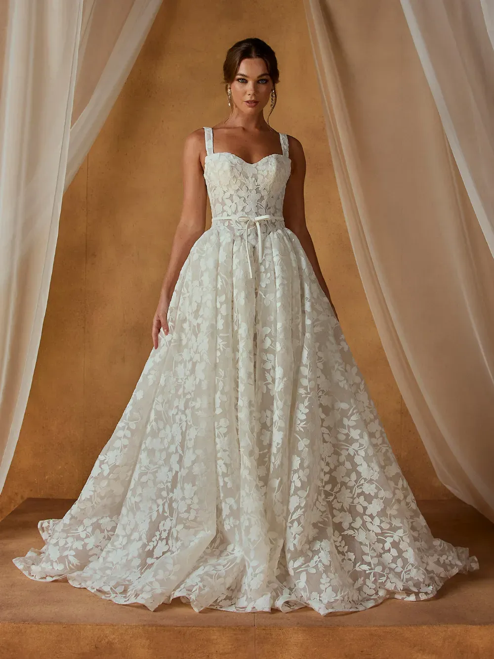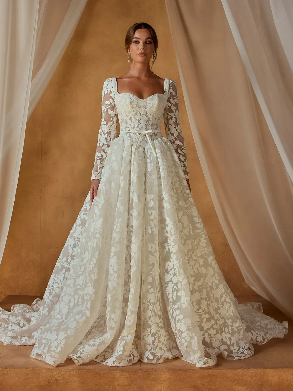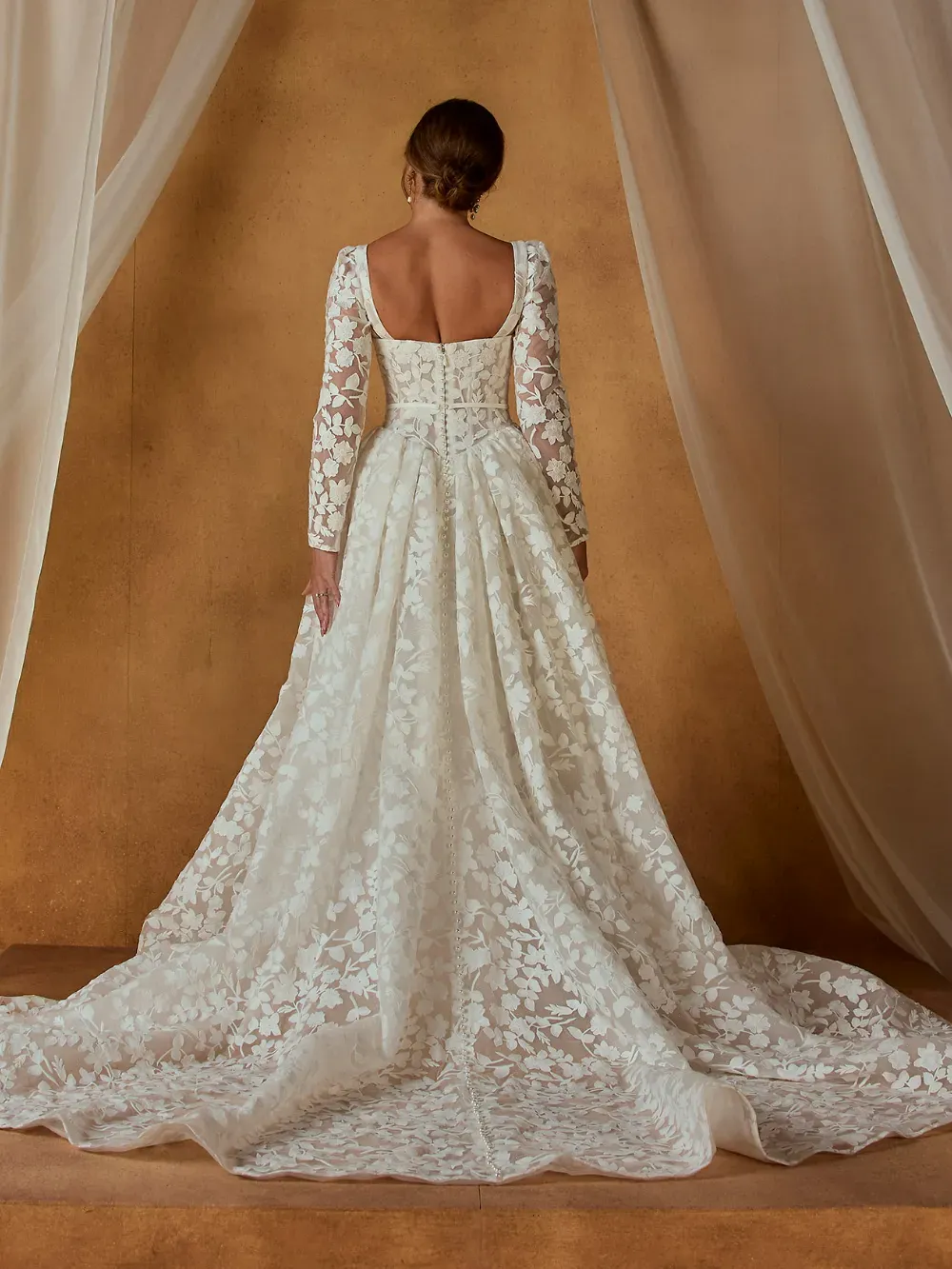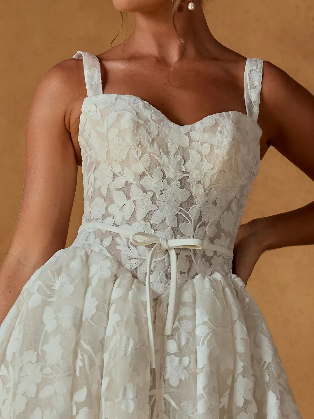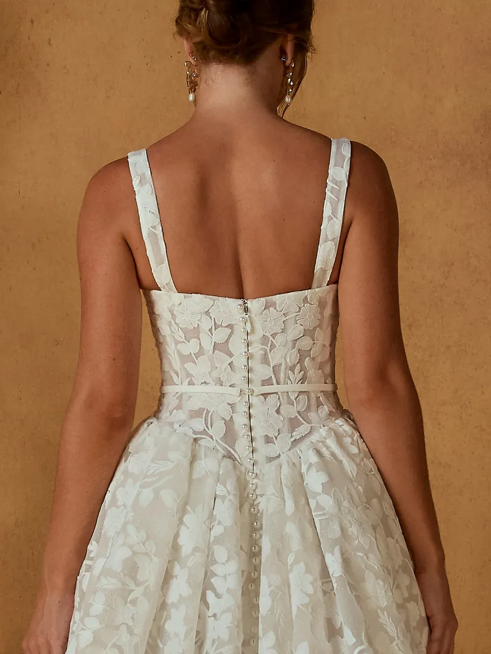 - Thoughtful detailing that balances modern minimalism with bridal elegance