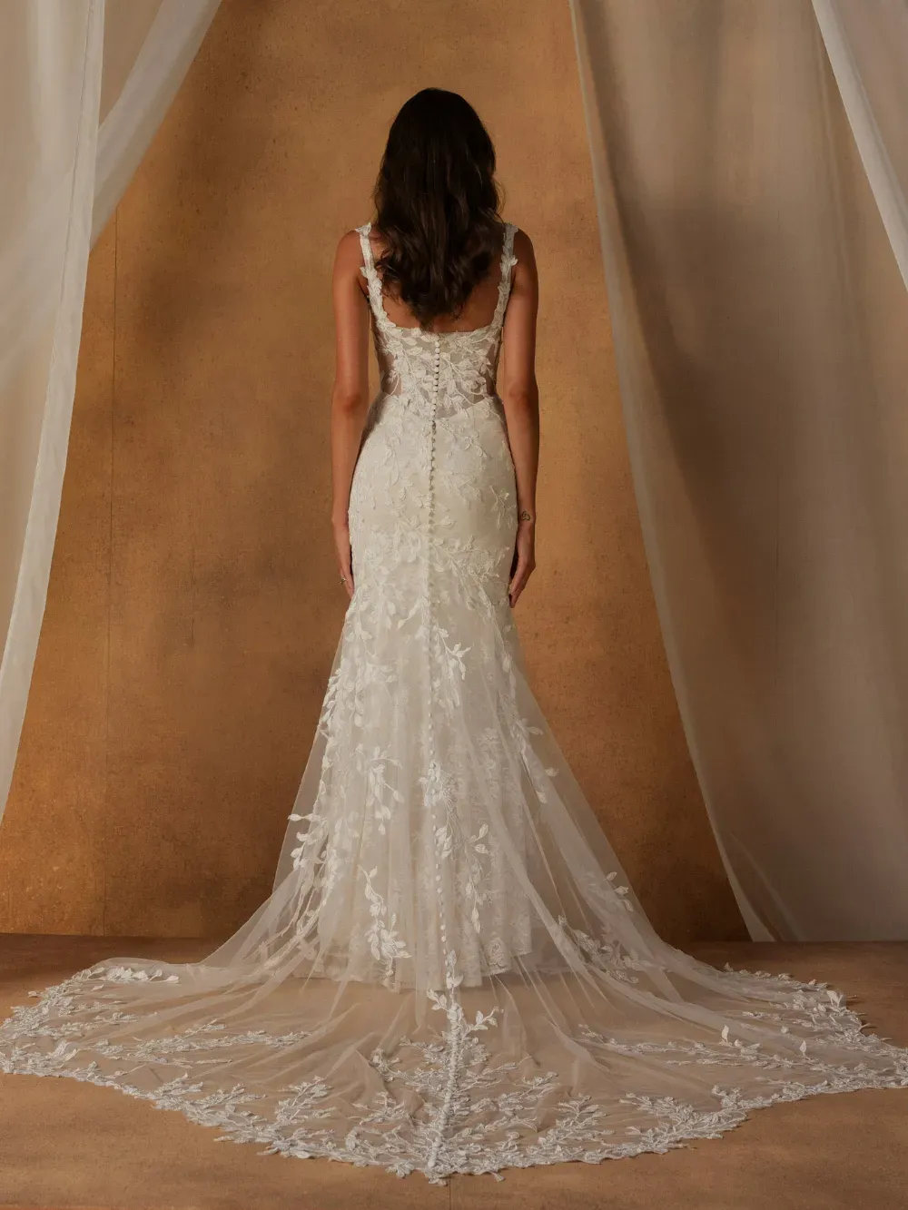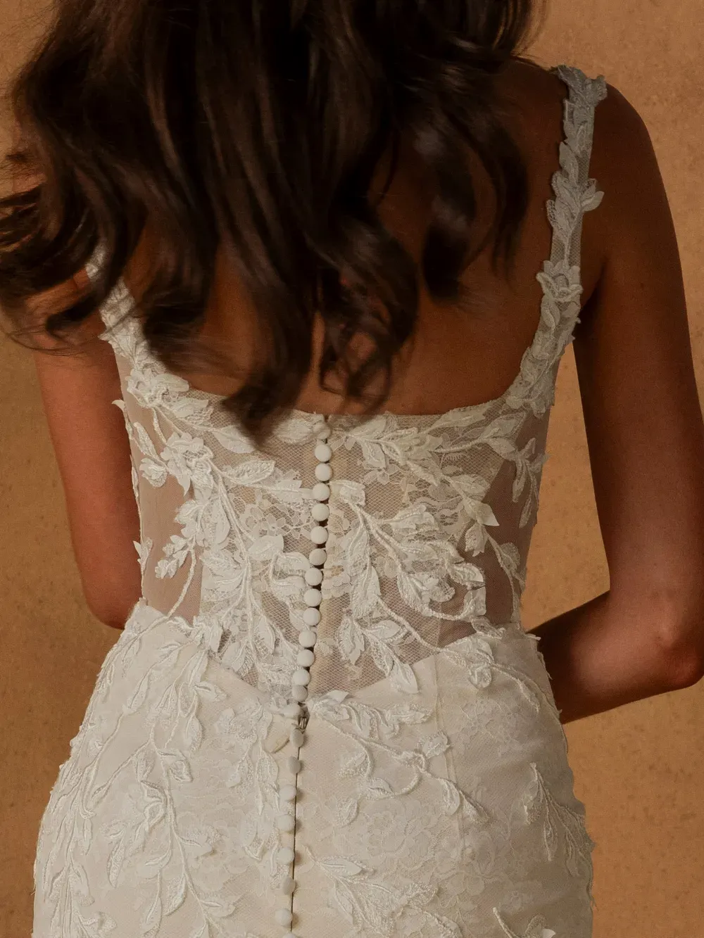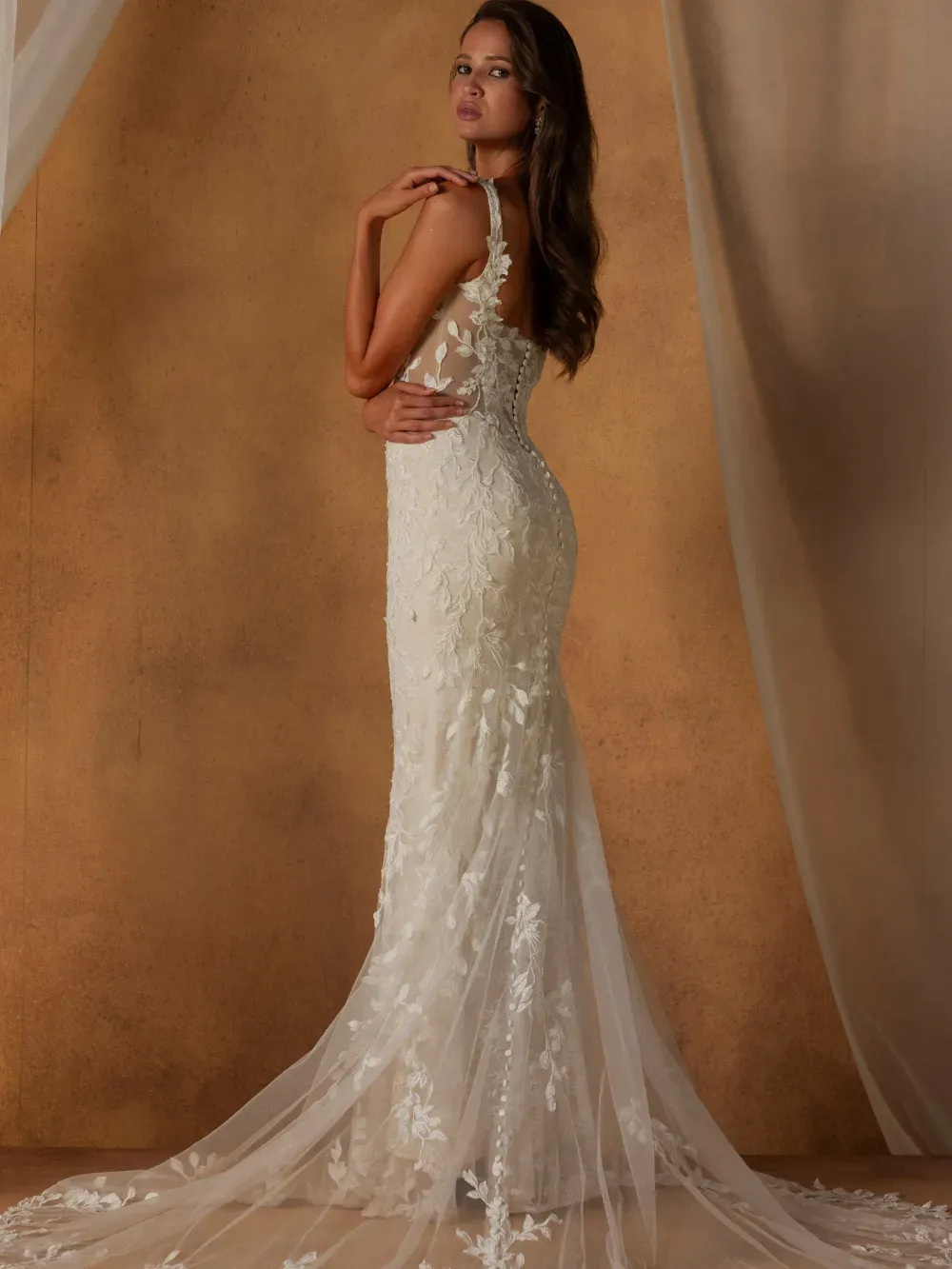 Organic, romantic, and deeply inspired by nature, Noha by Madi Lane Bridal captures the heart of the Terra collection. With lace that mimics natural growth and soft, asymmetrical movement, she embodies the balance of delicacy and confident femininity found in the world around us.