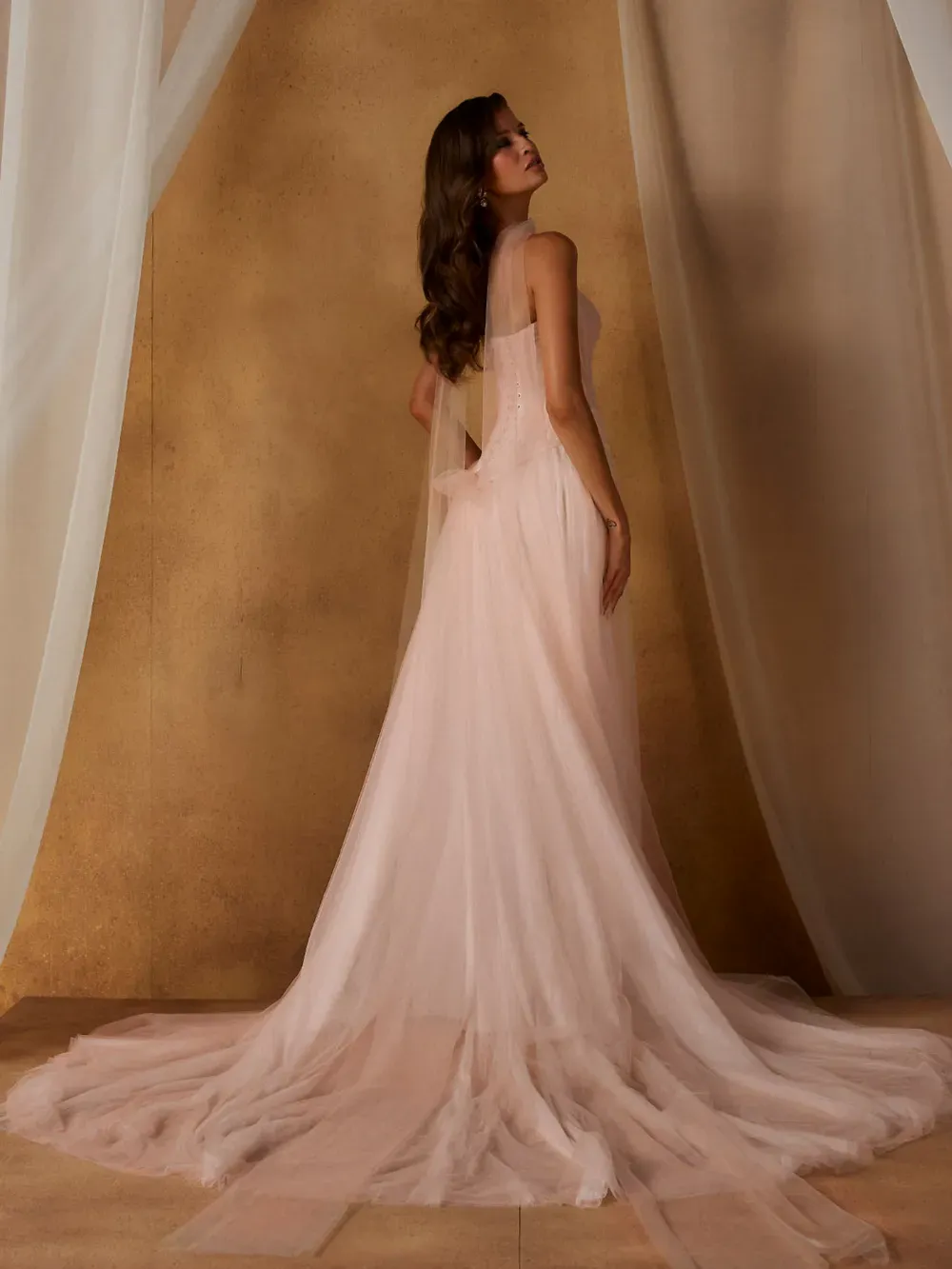 - Optional detachable off-the-shoulder tulle sleeves for added romance